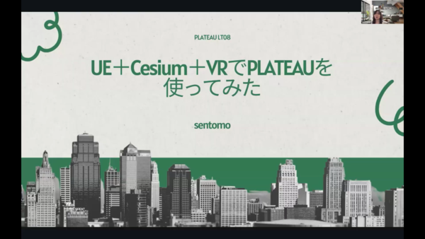 建設業向けVRアプリケーション開発に携わるsentomo氏は、PLATEAUの3D都市モデルをUE(Unreal Engine)とVRで利用する際の、2つの異なる実装方法(Unreal Engine + Cesium + PLATEAU + VR 、PLATEAU SDK for Unreal + VR)について検証を行ったとして、その結果を報告した。