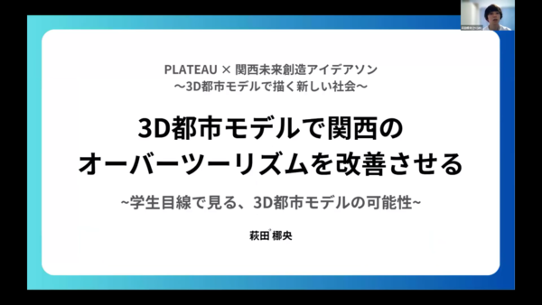 3D都市モデルで関西のオーバーツーリズムを改善させる ~学生目線で見る、3D都市モデルの可能性~(萩田 梛央氏)