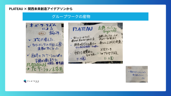 萩田氏は、2025年3月の「PLATEAU × 関西未来創造アイデアソン」にてチームで考案した「3D都市モデルで関西のオーバーツーリズムを改善させる」というアイデアの形成過程を発表した。