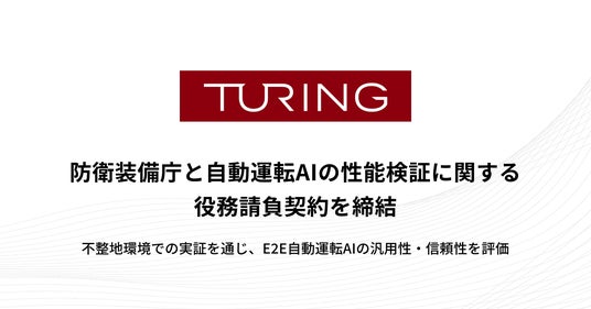 チューリング、防衛装備庁と自動運転AIの性能検証に関する役務請負契約を締結
