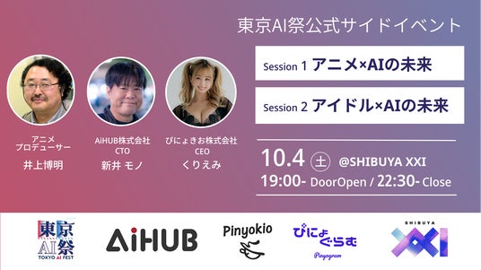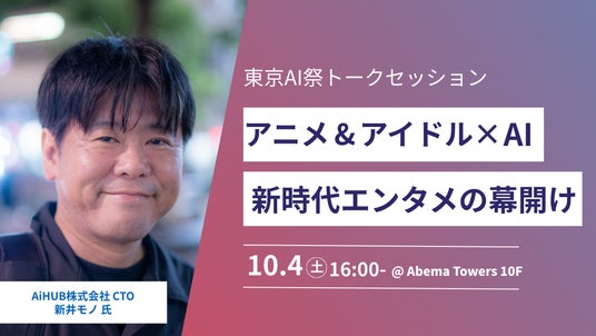 AiHUB株式会社(本社:東京都千代田区、代表取締役:園田れい)は、2025年10月4日-5日でABEMAタワーにて開催される日本最大級のAIテックカンファレンス「東京AI祭2025」にプラチナスポンサーとして参画いたします。また、本イベント内では、アニメ監督とアニメ×AIの可能性を語る特別セッションやAIハッカソンでの審査員、ブース出展を予定しています。