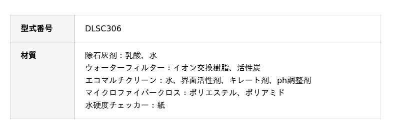 材質:水、界面活性剤、キレート剤、ph調整剤