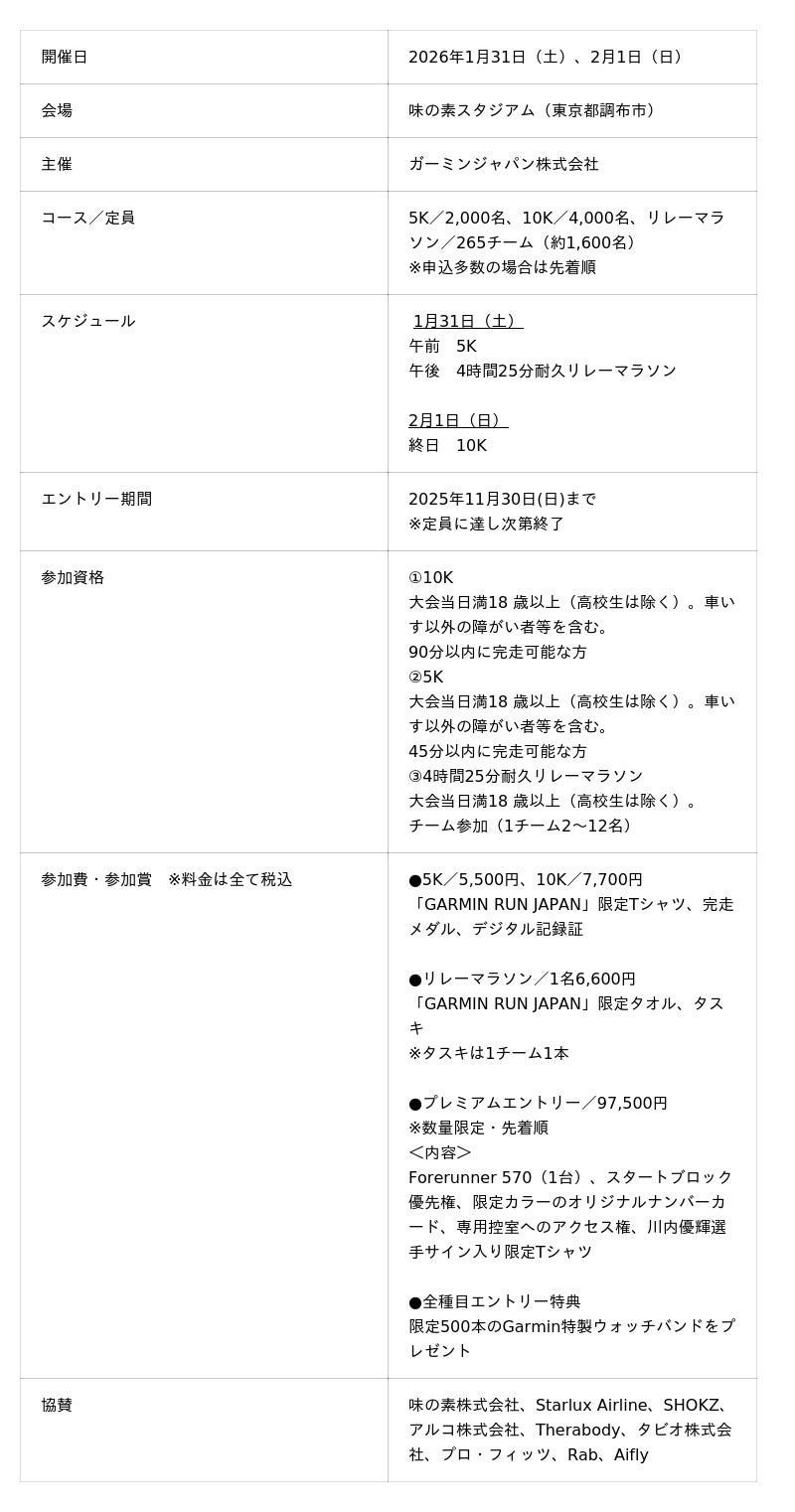 【「GARMIN RUN JAPAN 2026」 開催概要】
