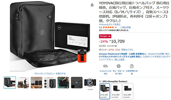 YOYOVAC(ヨヨバク)から「旅行用ポンプ付き真空圧縮バッグ」がAmazonタイムセールに登場。