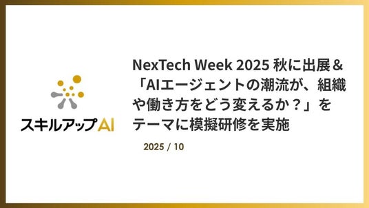 株式会社スキルアップNeXt(本社:東京都千代田区、代表取締役:田原 眞一、以下「スキルアップNeXt」)は、2025年10月8日(水)~10日(金)に幕張メッセで開催される「NexTech Week 2025 秋」に出展いたします。