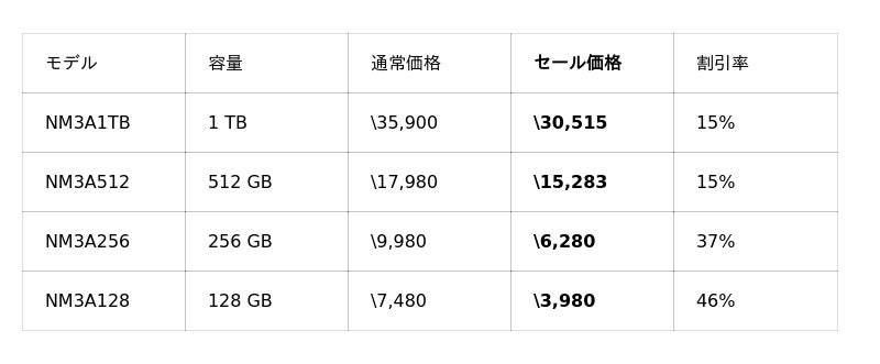 人気のNintendo Switch2用microSD Expressメモリーカードが最大46% OFF。また、PS5拡張用SSDは1 TBを9,980円から販売いたします。さらに、新製品のPS5拡張SSD規格サイズのヒートシンク付きSSDをそのまま装着できるM.2 SSDケース(エンクロージャー)もセール対象とします。PS5用SSDの買い替えの際、古いSSDを外付けSSDとして有効活用できます。