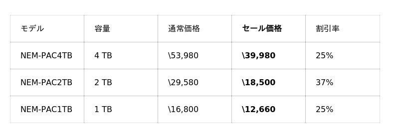 NEM-PACシリーズ製品ページ: https://www.nextorage.net/ssds/internal-ssd/nem-pac/