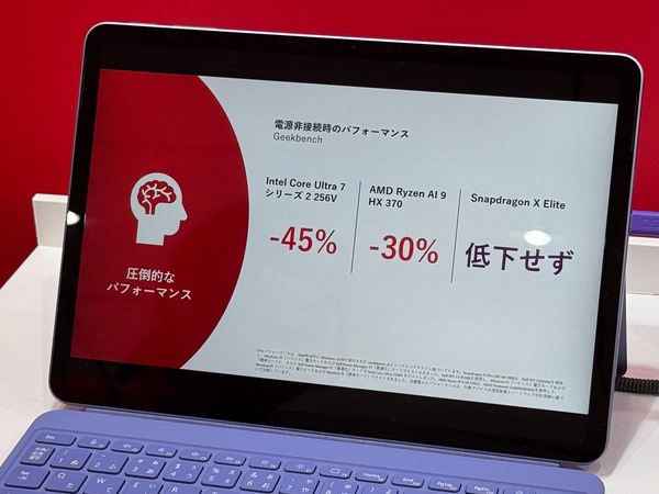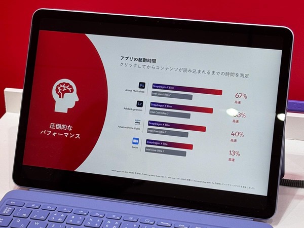 編集部ではQualcomm CDMA TechnologiesでPCビジネスを担当する井田昌也統括本部長を会場で取材した。イベントの目的は「Snapdragon XというPC向けの新しいテクノロジーに触れ、その良さとしてバッテリーの持ちとパフォーマンスのどちらも妥協せず両立している点を知っていただきたい」とコメントした。2024年からPCに搭載されているSnapdragon Xは登場からまだ1年強だが、北米や欧州では10%程度のシェアを獲得している。一方、国内ではまだ認知度が低いという認識もあり、「まだ何者でもないSnapdragon Xの魅力をより広く伝えていく必要がある」と意欲を語っていた。