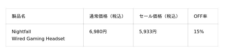 対象製品 セール価格一覧
