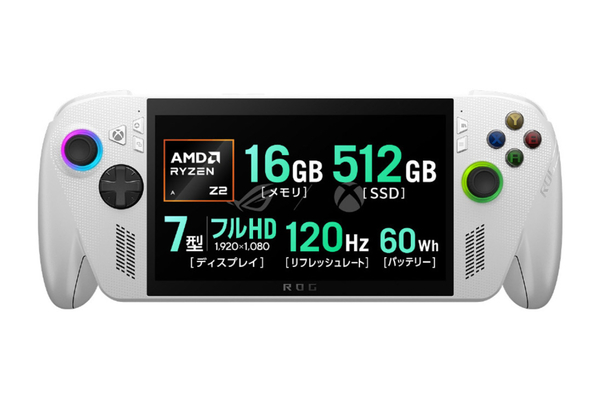 ディスプレーは、最大輝度500nitsの7型フルHD(120Hz)を搭載。CPUには、グラフィック性能が高く、電力効率にも優れる高速なAMD Ryzen AI Z2 Extremeを採用するほか、24GBメモリー、1TBストレージ、NPUの搭載などスペックも上々だ。優れたホールド感、約13.9時間駆動(動画再生時)のバッテリー、安心の冷却性能などで至高のゲーム体験を提供する。