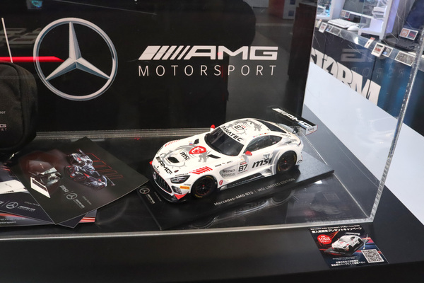 店頭では現在、付属のコラボアクセサリーに加え、先着100人にプレゼントされる「Mercedes-AMG GT3 MSI Limited Edition」1/18スケールカーを展示しています。日本橋で本機を店頭展示しているのはおそらくソフマップ なんば店のみとのこと。展示場所は2階のMSIコーナーです。