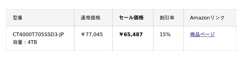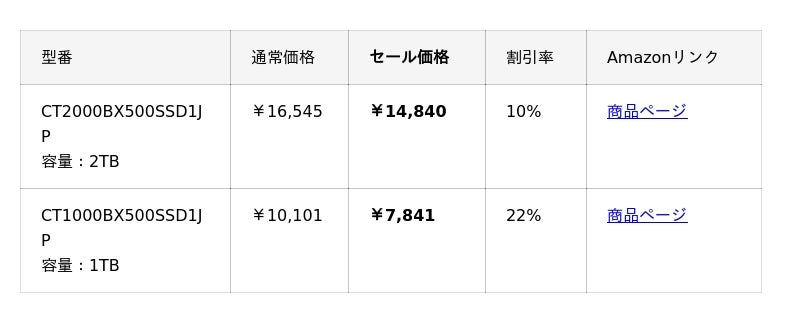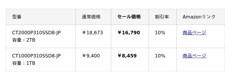 10月4日(土)から開催される「プライム感謝祭先行セール」において、Crucialの人気製品が最大22%OFFとなる特別セールを実施します。