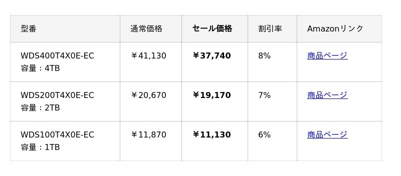 【Amazon プライム感謝祭】Sandisk、WesternDigitalのSSDやHDD 16製品が最大18%オフ!10/4(土)からAmazonプライム感謝祭先行セール開催!