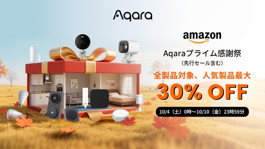 累計販売台数4000万を越えるlotスマートホームデバイスブランドAqaraは、日本におけるスマートホーム家電ならびにMatterの普及を目指し、先行セールを含む10/4(土)~10/10(金)の「Amazonプライム感謝祭」の期間中、Amazon公式サイトにて全34製品を最大30%OFFの特別価格で販売いたします。