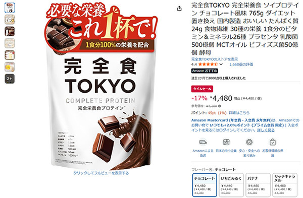 完全食TOKYOから、たったの1杯で1食分の約30種類の栄養がすべてとれる完全栄養食プロテイン「ソイプロテイン(チョコレート風味)」がプライム感謝祭先行セールに登場。