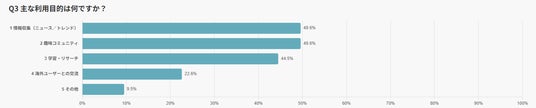 この結果から、日本国内でRedditを利用するユーザーは主に「情報収集」「趣味共有」「学習」という3つの目的で利用していることが明確になりました。