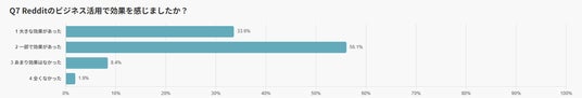 Redditをビジネスで活用したことがあると答えた107人に、その効果を尋ねたところ、33.6%が「大きな効果があった」と回答しました。