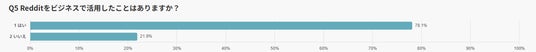 その利用者に対して、ビジネスの場面でRedditを活用した経験があるかを尋ねたところ、78.1%にあたる107人が「活用したことがある」と回答しました。