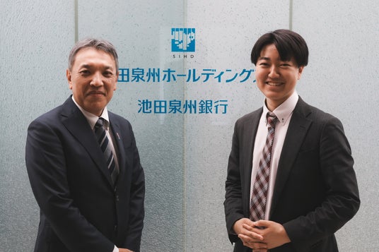 (左から)株式会社池田泉州ホールディングス 取締役代表執行役社長兼CEO 阪口 広一氏、当社 代表取締役CEO 千葉 駿介