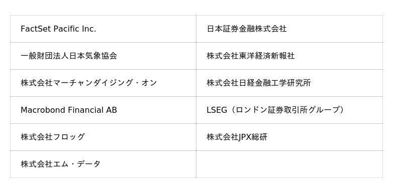 本ハッカソンは、JADAAメンバーである参加企業の技術力向上や協力関係の構築、またJADAAの取り組みをより多くの人に知ってもらうことを目的とし開催されます。 参加者は本ハッカソン趣旨に賛同したデータ提供事業者から提供される多様なデータを活用し、TOPIX Core30銘柄を対象としたAI分析に挑戦します。
