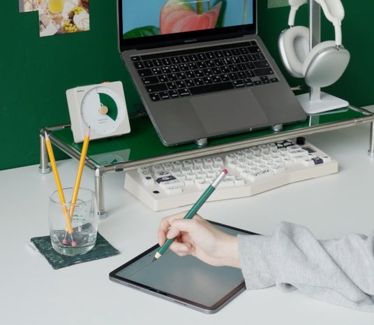 人間工学に基づいたデザイン性と実用的な機能の両方にこだわり、マグネット吸着によるワイヤレス充電や0.025秒の低遅延で滑らかな書き心地を実現。レトロなデザインに留まらない、使う用途に合わせて、勉強・仕事・イラスト制作まで、あらゆる場面で活躍するiPad用の万能ツールです。