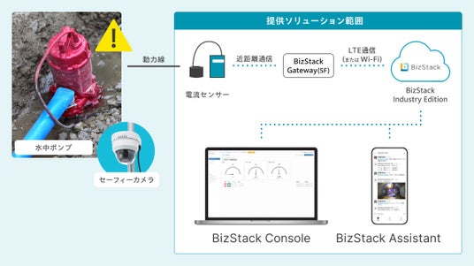 クラウド録画サービスシェアNo.1(※1)のセーフィー株式会社(東京都品川区:代表取締役社長CEO 佐渡島 隆平、以下「セーフィー」)は、現場業務に特化したAIアプリケーションの先駆けとして、企業の業務効率化と安全性向上を支援するMODE, Inc.(本社:米国カリフォルニア州、日本支店:東京都千代田区、CEO 上田 学、以下「MODE」)と協業し、「BizStack Construction Apps」の第一弾「水中ポンプ死活監視App」の提供を開始しました。本ソリューションによって、水中ポンプの稼働状況が常時確認され、停止や異常が発生した際にはAIが即座にアラートを発報し、現場の状況を迅速に把握が可能になります。特に、トンネル工事現場などでの見えづらく予測しにくい状況をセンサーや映像で「見える化」し、現場の巡視コストの削減と緊急時には迅速に対応が実現できるようになります。