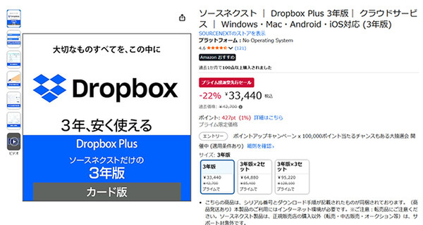 【プライム感謝祭先行セール】ソースネクスト Dropbox Plus 3年版が登場!
