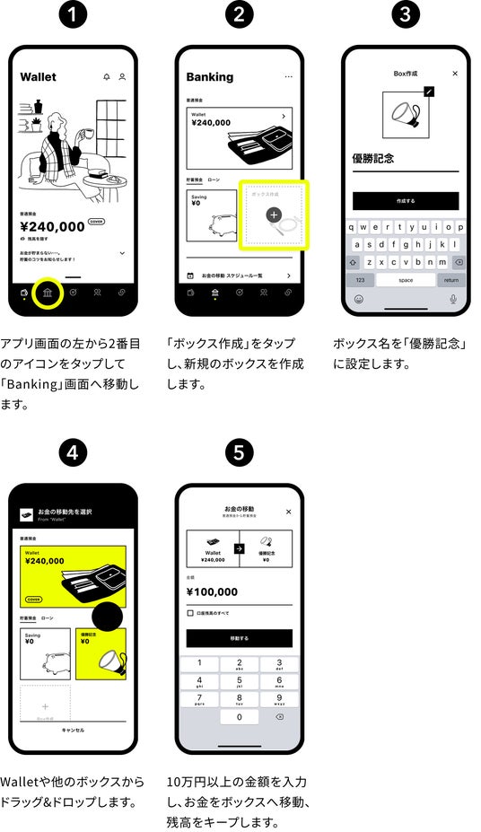 ・名称を「優勝記念」に設定したボックス(貯蓄預金)を作成すること