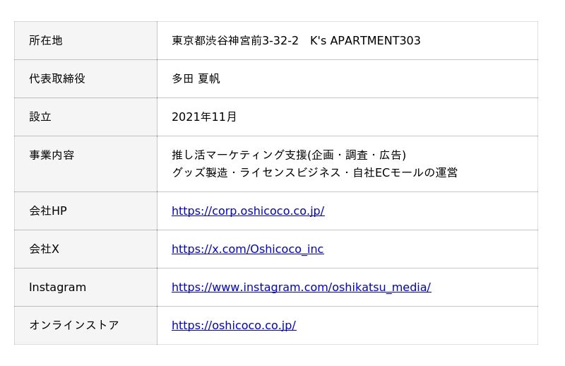弊社は"推し活”女子をターゲットに、オタク領域でオンラインストア・メディア運営を実施しております。また、企業様向けにオタク企画プロデュースやコンサルティングを行っております。