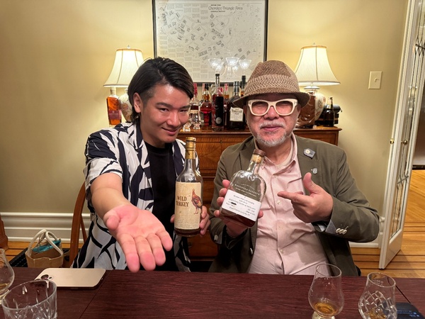 今回のツアーには、最年少で「マスター・オブ・ウイスキー」の称号を取得した著名なバーテンダーで、新宿ウイスキーサロンのオーナーである静谷和典氏もご一緒しました。彼が選んだのはメンチ切りターキー12年。ワイルドターキーのラベルに描かれている七面鳥が正面を向いているオールドボトルです。こちらも絶品でした。