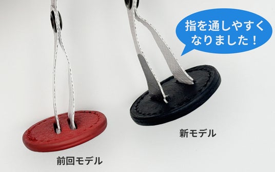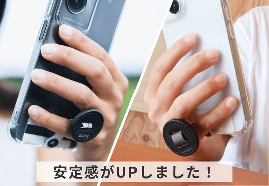 ボタンの大きさと革の仕様を改良したことに伴い、指の間に挟んだ際のスマホを支える安定感がさらにUPしました。