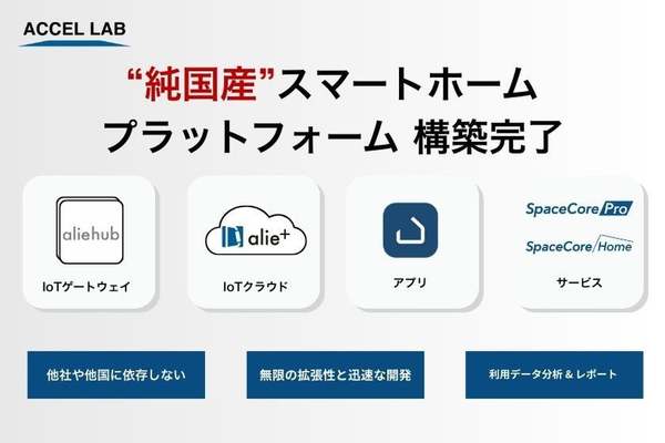 スマートホームサービス「SpaceCore(スペースコア)」を提供する株式会社アクセルラボは10月1日に、「IoTゲートウェイ」「クラウド」「アプリ」「サービス」を自社で開発・提供するスマートホームプラットフォームを構築したと発表。その中核を成すIoTゲートウェイ「aliehub(アリーハブ)」を、10月1日から正式に販売開始した。