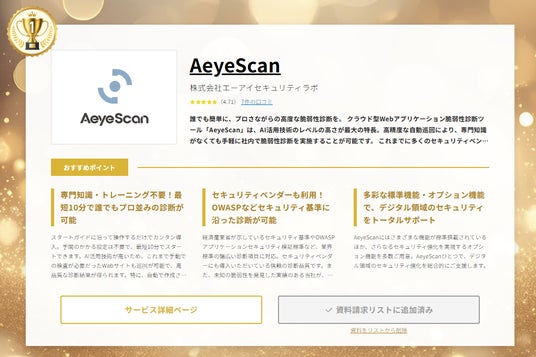 今回受賞したAeyeScanサービス紹介資料は「こちら」からダウンロードいただけます。