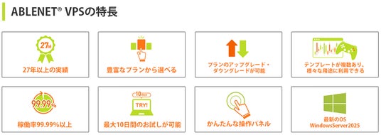 ーWindowsServerプリインストールプランとLinuxプランー 稼働率99.99%以上!安定稼働実績のABLENETVPSサービス