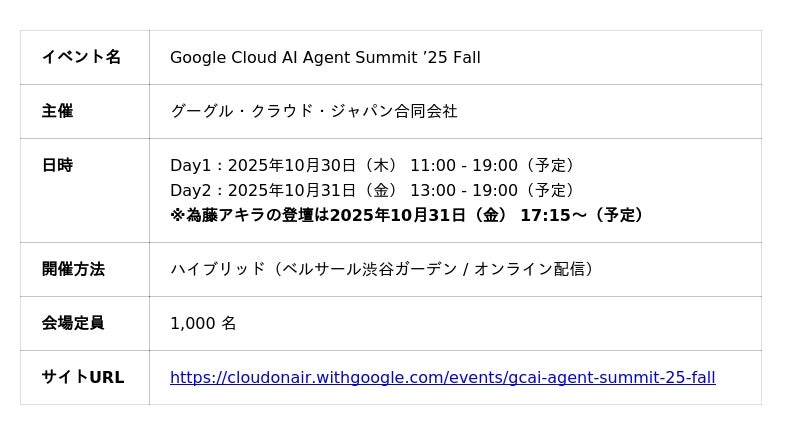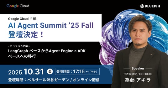BLUEISH代表 為藤がGoogle Cloud 主催「AI Agent Summit ’25 Fall」に登壇決定 - LangGraphからAgent Engine×ADKへの移行事例を初公開