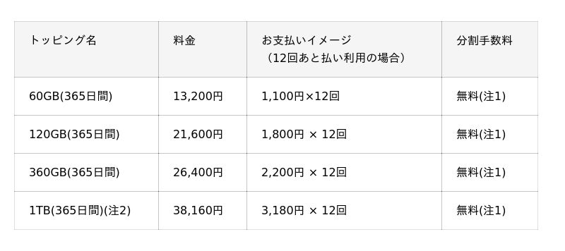 8月1日から10月31日までの期間限定でお支払い方法に追加していますが、お客さまからご好評いただいたことから引き続き提供します。お客さまはおトクな1年間トッピングを12回払いとすることで、月々の支払い負担を軽減してご利用いただけます。