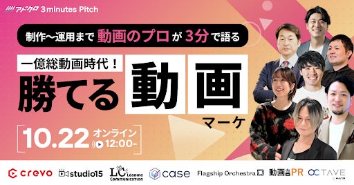 本イベントは、動画マーケティングの有力サービスを展開する企業が 「1社3分」 という短い時間で自社サービスや事例・マーケティング手法を紹介するピッチ形式で行われます。効率的に情報収集したいマーケティング担当者の皆さまにとって、短時間で最新の動画マーケティングの動向を把握できる機会となります。