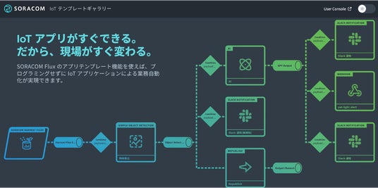 株式会社ソラコム(本社:東京都港区、代表取締役社長 CEO 玉川憲)は、IoTシステムの自動化を目的としたアプリケーションを構築できるサービス「SORACOM Flux(ソラコム フラックス)」において、コピーしてパラメーターを設定するだけでIoTの自動化アプリケーションを構築できる「アプリテンプレート」を集約したサイト「テンプレートギャラリー」を2025年10月7日より公開しました。