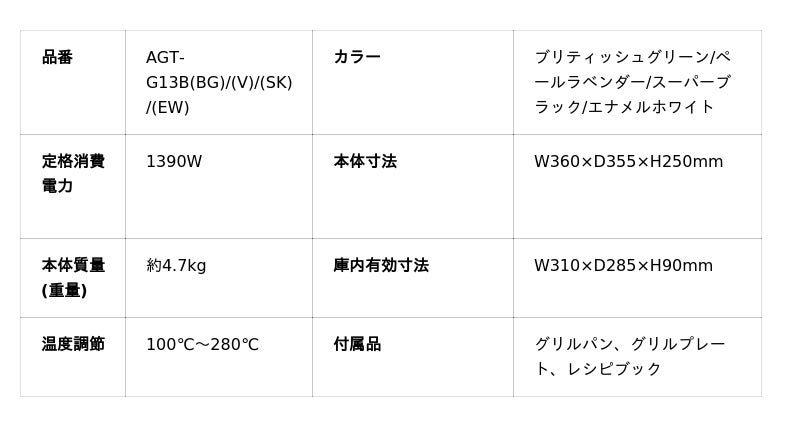 - グリルパン内部が最大330℃まで高温になるため、本格的なオーブン料理も実現