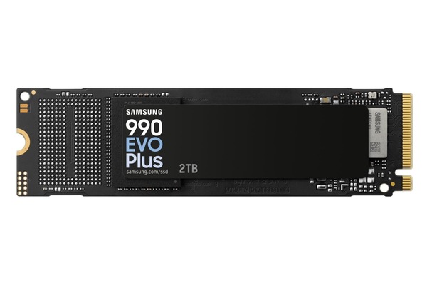 990 EVO Plusは、PCIe Gen4.0 ×4接続、NVMe 2.0対応のM.2(2280)型SSD。公称値は読み出し速度最大7250MB/秒、書き込み速度最大6300MB/秒。TLC NANDを採用し、5年限定保証も付帯する。