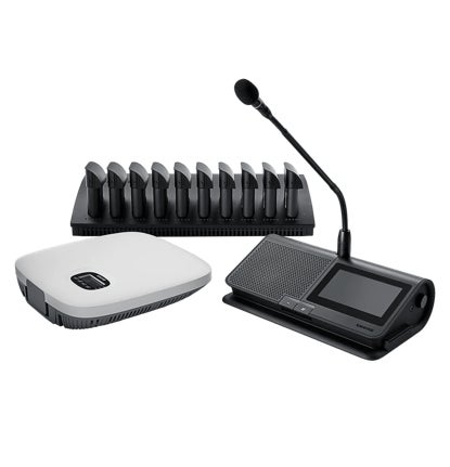 議長・参加者・通訳など多様な役割に対応するワイヤレス会議システムMXCW。最大125台まで接続可能で、投票・アジェンダ表示・暗号化通信にも対応。レイアウト変更にも柔軟に対応し、役員室から国際会議まで幅広く活躍します。