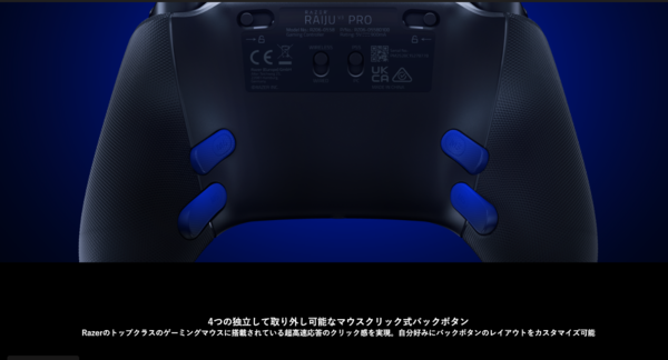 Razer Raiju V3 Proは、カスタマイズの自由度の高さも魅力のひとつだ。ユーザーからの要望を受け、バックボタンは取り外し可能な仕様へと進化。付属のドライバーでカバーを交換でき、用途に応じて平らなカバーに切り替えられるようになった。