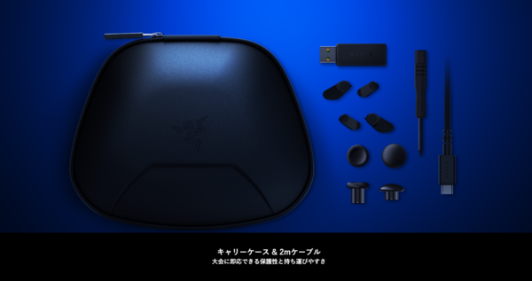 同梱アクセサリーも充実しており、ワイヤレスドングル、交換用スティック、ドライバー、充電ケーブルなどがすべてキャリーケースに収納可能。
