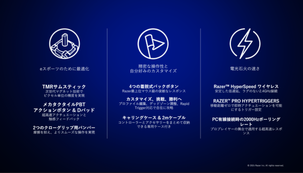 また、ボタン部分にはRazerメカタクタイルPBTアクションボタンを搭載。耐久性は300万回のタップに耐えるとされ、激しいプレーにも安心して使用できる。