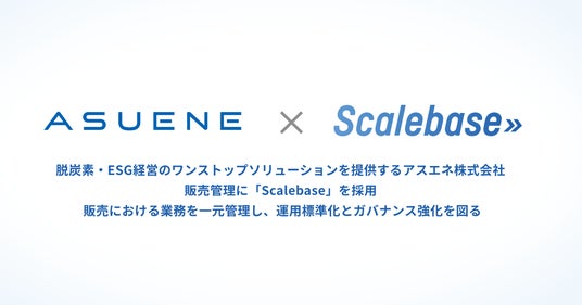 AIで企業の収益プロセスを最適化する Scalebase株式会社(本社:東京都港区、代表取締役CEO:毛利 悠記、以下、Scalebase)は、「Scalebase」(スケールベース)および「Scalebase ペイメント」が、アスエネ株式会社(本社:東京都港区、代表取締役CEO:西和田 浩平、以下、アスエネ)に採用されたことをお知らせします。