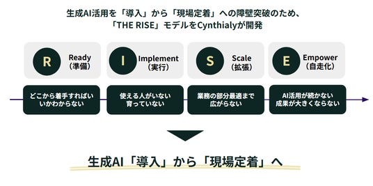 当社は、生成AI活用を導入から現場定着へと導く独自のアプローチ「THE RISE」を開発し、これらの課題解決を支援してきました。本展示会では、この実践的なメソッドと客観的な診断ツールを通じて、多くの企業の生成AI活用推進をサポートします。