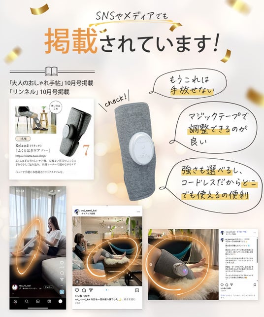 Relattaは、そうした声に応えるために誕生したブランドで、今回のふくらはぎリラックスアイテムは、「家にいながら簡単に心地よい時間を楽しめる」ことをテーマに開発しました。