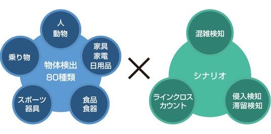 NVR-Pro TypeHは、AI専用プロセッサとAIモデルを搭載し、ネットワークカメラの映像をリアルタイムで分析します。これにより、ユースケースに応じた80種類の物体検出と分析シナリオの組み合わせが可能となり、効率的な監視を実現します。