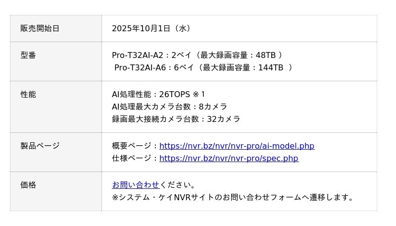 サクサグループのソリューション事業中核会社である株式会社システム・ケイ(以下、システム・ケイ)は、AI専用プロセッサを搭載した、録画も映像解析も叶えるオールインワンのネットワークビデオレコーダー「NVR-Pro TypeH」を2025年10月1日より販売を開始いたしました。