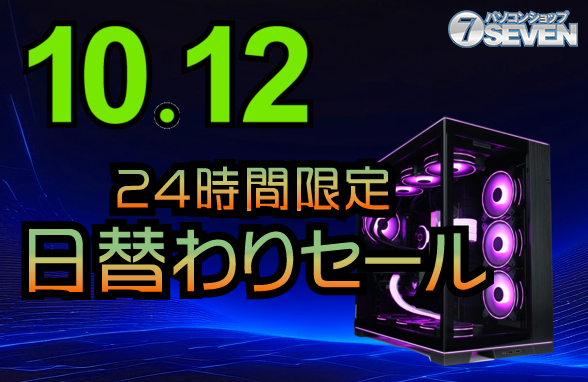 セブンアールジャパンは、10月12日限定で「24時間限定セール」を実施する。セール期間は同日0:00から23:59までのわずか1日。この特別セールでは、最新のゲーミングPCやデスクトップPCが最大45,000円引きで購入できる。